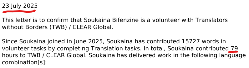 I have spent this summer volunteering on translators without borders and it was a wonderful journey so far. When I got my reference letter at 15000 words benchmark three months ago, I had already achieved more than 70 hours of volunteering . Yet, here I am checking my profile today to find with more than 30000 words, I only have 2 hours. Please help me!!!